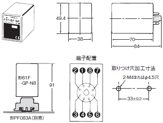 形61F-GP-N8 は形61F-GP と外形寸法が異なるため、適用ソケットおよび、ソケットとの固定方法が異なります。