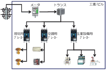 電力量データを見える化し、収集した電力量の種類により「見える化レベル」を3つのレベルに分けることができます。以下の設備で、どのような電力量を測定し、見える化しているのかを見ていきます。