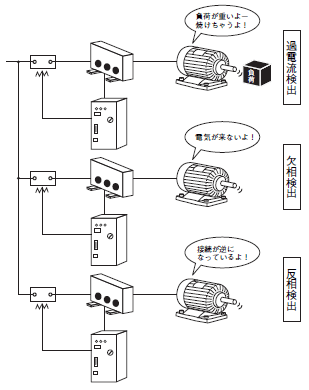 過負荷検出でモータ保護の大部分をカバーできます。過負荷の確実な保護のためには、3Eリレーの動作値整定、および動作時間整定を正しく行うことが必要です。