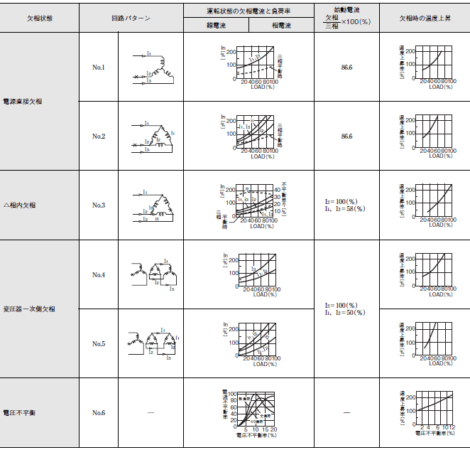 | 配電系異常 | 欠相運転(焼損防止) | ◎ | □ | ◎ | ◎ | |