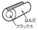 | ①品質の均一性からフローソルダ式を おすすめします。 ・はんだ:JIS Z 3282、H63A ・はんだ温度:約250℃(DWSの場合は 約260℃) ・はんだ時間:約5秒以内(DWSの場合は、 1回目約2秒、2回目約3秒) ・はんだがプリント基板上にあふれない ように液面位置調整をしてください。 | ①こて先の平滑仕上げをした後、下記条件にて はんだ付けを行ってください。 ・はんだ:JIS Z 3282、H60A、またはH63Aの やに入り(ロジン系) ・はんだごて:30~60W ・こて先温度:280~300℃ ・はんだ時間:約3秒以内 ②なお、図のように、はんだに切断面を入れて フラックスの飛散を防止したものがあります。 ![]() | |||