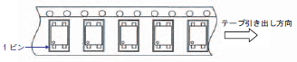 キャリアテープ凹み角穴内の製品の向きは、下記のとおりです。