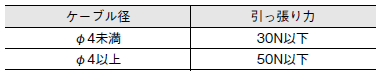 ケーブル配線時に下記の表以上の力を加えないでください。