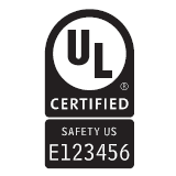 製品の安全認証を示すものとして認証機関の認証マークも表示しています。代表的なものは以下です。