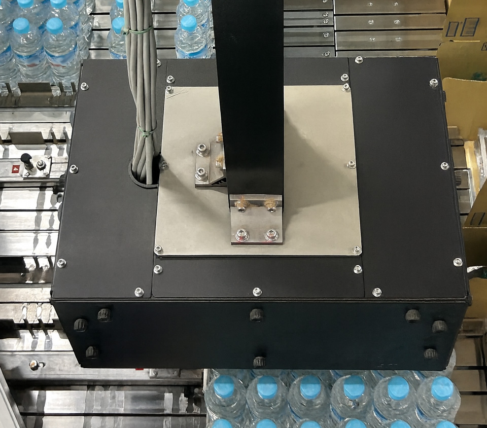 ダンボールに収納される直前に複数本のQRコードを同時に読み取って、ケース内の全ボトルデータを管理