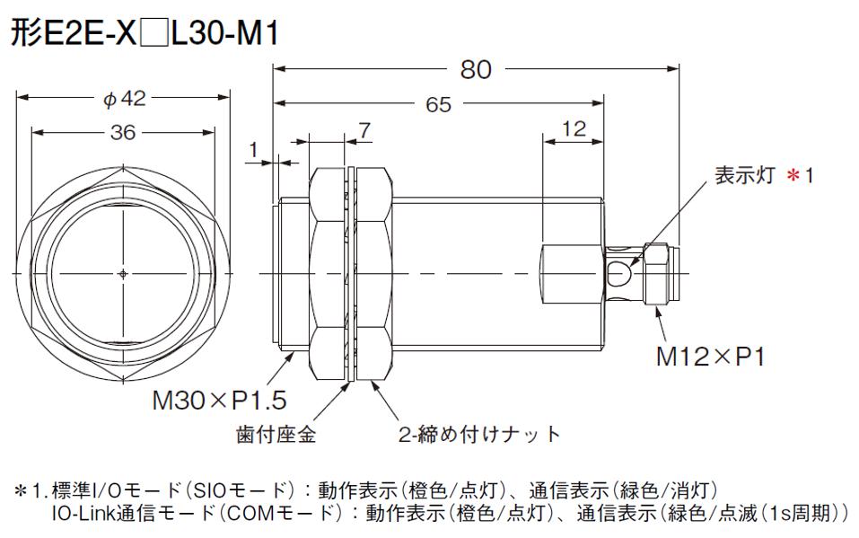 | 表示灯 | 標準I/Oモード(SIOモード): 動作表示灯(橙/点灯)、通信表示灯(緑/消灯) IO-Linkモード(COMモード): 動作表示灯(橙/点灯)、通信表示灯(緑/点滅(1s周期)) |