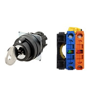 キー形セレクタスイッチ(φ22), 3ノッチ, 樹脂ベゼル, 手動復帰, キー左右抜け, IP66, ねじ端子台, 接点構成: NC/NO/-