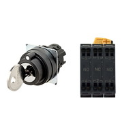 キー形セレクタスイッチ(φ22), 3ノッチ, 樹脂ベゼル, 手動復帰, キー左右抜け, IP66, プッシュインPlus端子台, 接点構成: NO/NC/NO