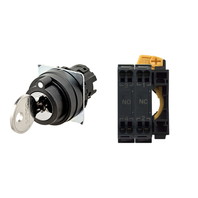 キー形セレクタスイッチ(φ22), 3ノッチ, 樹脂ベゼル, 右に自動復帰, キー中抜け, IP66, プッシュインPlus端子台, 接点構成: -/NC/NO