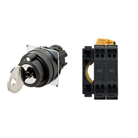 キー形セレクタスイッチ(φ22), 3ノッチ, 樹脂ベゼル, 右に自動復帰, キー中抜け, IP66, プッシュインPlus端子台, 接点構成: NC/NC/-