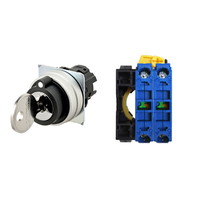 キー形セレクタスイッチ(φ22), 3ノッチ, 金属ベゼル, 左に自動復帰, キー左抜け, IP66, ねじ端子台, 接点構成: NO/NO/-