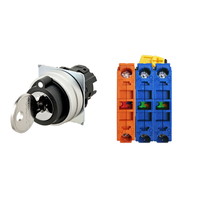 キー形セレクタスイッチ(φ22), 3ノッチ, 金属ベゼル, 左に自動復帰, キー左抜け, IP66, ねじ端子台, 接点構成: NO/NO/NC