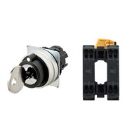 キー形セレクタスイッチ(φ22), 3ノッチ, 金属ベゼル, 左に自動復帰, キー左抜け, IP66, プッシュインPlus端子台, 接点構成: NC/-/NC