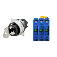 キー形セレクタスイッチ(φ22), 3ノッチ, 金属ベゼル, 左に自動復帰, キー中抜け, IP66, ねじ端子台, 接点構成: NO/NO/NO