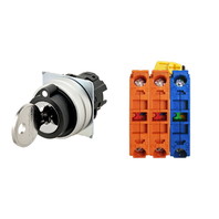 キー形セレクタスイッチ(φ22), 3ノッチ, 金属ベゼル, 右に自動復帰, キー中抜け, IP66, ねじ端子台, 接点構成: NO/NC/NC