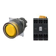 押ボタンスイッチ(φ22), 照光, 樹脂ベゼル, フルガード形, オルタネイト, ボタンの色: 黄, IP66, プッシュインPlus端子台, 接点構成: NC/点灯ユニット/NC, LEDランプ色: 黄, LEDランプ電圧: AC/DC12V