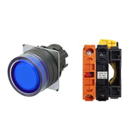 押ボタンスイッチ(φ22), 照光, 樹脂ベゼル, フルガード形, モーメンタリ, ボタンの色: 青, IP66, ねじ端子台, 接点構成: -/点灯ユニット/NC, LEDランプ色: 青, LEDランプ電圧: AC/DC12V