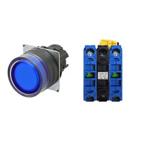 押ボタンスイッチ(φ22), 照光, 樹脂ベゼル, フルガード形, モーメンタリ, ボタンの色: 青, IP66, ねじ端子台, 接点構成: NO/点灯ユニット/NO, LEDランプ色: 青, LEDランプ電圧: AC100/110/120V