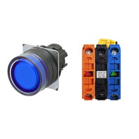 押ボタンスイッチ(φ22), 照光, 樹脂ベゼル, フルガード形, モーメンタリ, ボタンの色: 青, IP66, ねじ端子台, 接点構成: NO/点灯ユニット/NC, LEDランプ色: 青, LEDランプ電圧: AC/DC12V