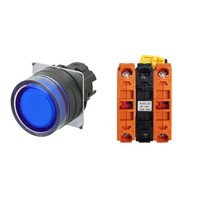 押ボタンスイッチ(φ22), 照光, 樹脂ベゼル, フルガード形, モーメンタリ, ボタンの色: 青, IP66, ねじ端子台, 接点構成: NC/点灯ユニット/NC, LEDランプ色: 青, LEDランプ電圧: AC/DC12V