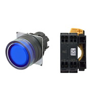 押ボタンスイッチ(φ22), 照光, 樹脂ベゼル, フルガード形, モーメンタリ, ボタンの色: 青, IP66, プッシュインPlus端子台, 接点構成: -/点灯ユニット/NC, LEDランプ色: 青, LEDランプ電圧: AC/DC12V