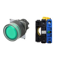 押ボタンスイッチ(φ22), 照光, 樹脂ベゼル, フルガード形, モーメンタリ, ボタンの色: 緑, IP66, ねじ端子台, 接点構成: NO/点灯ユニット/-, LEDランプ色: 緑, LEDランプ電圧: AC/DC6V