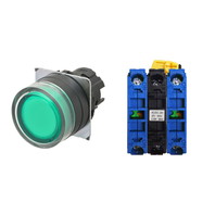 押ボタンスイッチ(φ22), 照光, 樹脂ベゼル, フルガード形, モーメンタリ, ボタンの色: 緑, IP66, ねじ端子台, 接点構成: NO/点灯ユニット/NO, LEDランプ色: 緑, LEDランプ電圧: AC/DC12V