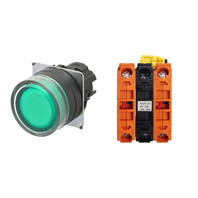 押ボタンスイッチ(φ22), 照光, 樹脂ベゼル, フルガード形, モーメンタリ, ボタンの色: 緑, IP66, ねじ端子台, 接点構成: NC/点灯ユニット/NC, LEDランプ色: 緑, LEDランプ電圧: AC/DC6V