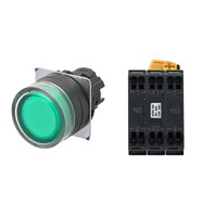 押ボタンスイッチ(φ22), 照光, 樹脂ベゼル, フルガード形, モーメンタリ, ボタンの色: 緑, IP66, プッシュインPlus端子台, 接点構成: NO/点灯ユニット/NC, LEDランプ色: 緑, LEDランプ電圧: AC/DC6V