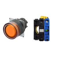 押ボタンスイッチ(φ22), 照光, 樹脂ベゼル, フルガード形, モーメンタリ, ボタンの色: 橙, IP66, ねじ端子台, 接点構成: NO/点灯ユニット/-, LEDランプ色: 橙, LEDランプ電圧: AC100/110/120V