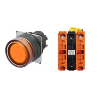 押ボタンスイッチ(φ22), 照光, 樹脂ベゼル, フルガード形, モーメンタリ, ボタンの色: 橙, IP66, ねじ端子台, 接点構成: NC/点灯ユニット/NC, LEDランプ色: 橙, LEDランプ電圧: AC200/220/230/240V