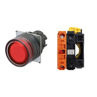 押ボタンスイッチ(φ22), 照光, 樹脂ベゼル, フルガード形, モーメンタリ, ボタンの色: 赤, IP66, ねじ端子台, 接点構成: -/点灯ユニット/NC, LEDランプ色: 赤, LEDランプ電圧: AC100/110/120V