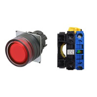 押ボタンスイッチ(φ22), 照光, 樹脂ベゼル, フルガード形, モーメンタリ, ボタンの色: 赤, IP66, ねじ端子台, 接点構成: NO/点灯ユニット/-, LEDランプ色: 赤, LEDランプ電圧: AC/DC6V