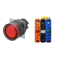 押ボタンスイッチ(φ22), 照光, 樹脂ベゼル, フルガード形, モーメンタリ, ボタンの色: 赤, IP66, ねじ端子台, 接点構成: NO/点灯ユニット/NC, LEDランプ色: 赤, LEDランプ電圧: AC/DC6V