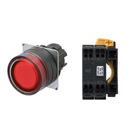 押ボタンスイッチ(φ22), 照光, 樹脂ベゼル, フルガード形, モーメンタリ, ボタンの色: 赤, IP66, プッシュインPlus端子台, 接点構成: -/点灯ユニット/NC, LEDランプ色: 赤, LEDランプ電圧: AC/DC6V