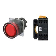押ボタンスイッチ(φ22), 照光, 樹脂ベゼル, フルガード形, モーメンタリ, ボタンの色: 赤, IP66, プッシュインPlus端子台, 接点構成: NO/点灯ユニット/-, LEDランプ色: 赤, LEDランプ電圧: AC100/110/120V