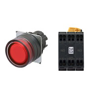 押ボタンスイッチ(φ22), 照光, 樹脂ベゼル, フルガード形, モーメンタリ, ボタンの色: 赤, IP66, プッシュインPlus端子台, 接点構成: NO/点灯ユニット/NO, LEDランプ色: 赤, LEDランプ電圧: AC/DC24V