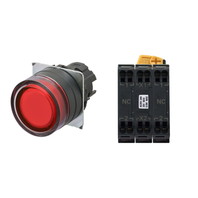 押ボタンスイッチ(φ22), 照光, 樹脂ベゼル, フルガード形, モーメンタリ, ボタンの色: 赤, IP66, プッシュインPlus端子台, 接点構成: NC/点灯ユニット/NC, LEDランプ色: 赤, LEDランプ電圧: AC/DC6V