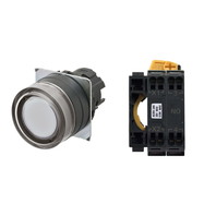 押ボタンスイッチ(φ22), 照光, 樹脂ベゼル, フルガード形, モーメンタリ, ボタンの色: 白, IP66, プッシュインPlus端子台, 接点構成: NO/点灯ユニット/-, LEDランプ色: 黄, LEDランプ電圧: AC200/220/230/240V