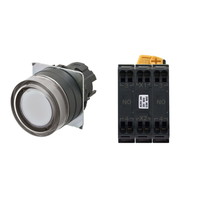 押ボタンスイッチ(φ22), 照光, 樹脂ベゼル, フルガード形, モーメンタリ, ボタンの色: 白, IP66, プッシュインPlus端子台, 接点構成: NO/点灯ユニット/NO, LEDランプ色: 黄, LEDランプ電圧: AC200/220/230/240V