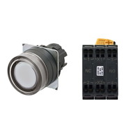 押ボタンスイッチ(φ22), 照光, 樹脂ベゼル, フルガード形, モーメンタリ, ボタンの色: 白, IP66, プッシュインPlus端子台, 接点構成: NO/点灯ユニット/NC, LEDランプ色: 黄, LEDランプ電圧: AC/DC24V