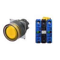 押ボタンスイッチ(φ22), 照光, 樹脂ベゼル, フルガード形, モーメンタリ, ボタンの色: 黄, IP66, ねじ端子台, 接点構成: NO/点灯ユニット/NO, LEDランプ色: 黄, LEDランプ電圧: AC100/110/120V