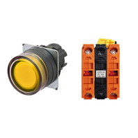 押ボタンスイッチ(φ22), 照光, 樹脂ベゼル, フルガード形, モーメンタリ, ボタンの色: 黄, IP66, ねじ端子台, 接点構成: NC/点灯ユニット/NC, LEDランプ色: 黄, LEDランプ電圧: AC100/110/120V