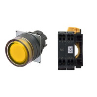 押ボタンスイッチ(φ22), 照光, 樹脂ベゼル, フルガード形, モーメンタリ, ボタンの色: 黄, IP66, プッシュインPlus端子台, 接点構成: -/点灯ユニット/NC, LEDランプ色: 黄, LEDランプ電圧: AC100/110/120V