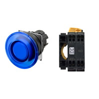 押ボタンスイッチ(φ22), 照光, 樹脂ベゼル, きのこ形, オルタネイト, ボタンの色: 青, IP66, プッシュインPlus端子台, 接点構成: NO/点灯ユニット/-, LEDランプ色: 青, LEDランプ電圧: AC100/110/120V