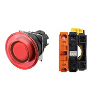 押ボタンスイッチ(φ22), 照光, 樹脂ベゼル, きのこ形, オルタネイト, ボタンの色: 赤, IP66, ねじ端子台, 接点構成: -/点灯ユニット/NC, LEDランプ色: 赤, LEDランプ電圧: AC200/220/230/240V