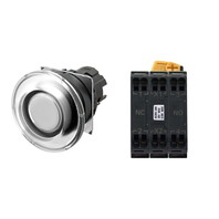 押ボタンスイッチ(φ22), 照光, 樹脂ベゼル, きのこ形, オルタネイト, ボタンの色: 白, IP66, プッシュインPlus端子台, 接点構成: NO/点灯ユニット/NC, LEDランプ色: 黄, LEDランプ電圧: AC/DC12V