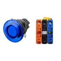 押ボタンスイッチ(φ22), 照光, 樹脂ベゼル, きのこ形, モーメンタリ, ボタンの色: 青, IP66, ねじ端子台, 接点構成: NO/点灯ユニット/NC, LEDランプ色: 青, LEDランプ電圧: AC/DC24V