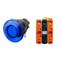 押ボタンスイッチ(φ22), 照光, 樹脂ベゼル, きのこ形, モーメンタリ, ボタンの色: 青, IP66, ねじ端子台, 接点構成: NC/点灯ユニット/NC, LEDランプ色: 青, LEDランプ電圧: AC100/110/120V