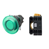 押ボタンスイッチ(φ22), 照光, 樹脂ベゼル, きのこ形, モーメンタリ, ボタンの色: 緑, IP66, プッシュインPlus端子台, 接点構成: NO/点灯ユニット/-, LEDランプ色: 緑, LEDランプ電圧: AC100/110/120V